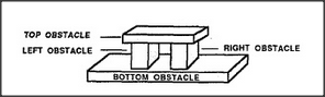 An obstacle is an object that interferes with the goal of moving in a certain direction. To be trapped is to be unable to move in any acceptable direction. Why does the block-arch form a trap? The simplest explanation is that each of its four sides is a separate obstacle that keeps us from escaping in a certain direction. (For our present purposes, we'll regard moving the hand forward or backward as unacceptable.) Therefore we're trapped, since there are only four acceptable directions — up, down, left, or right — and each of them is separately blocked. Psychologically, however, there's something missing in that explanation: it doesn't quite describe our sense of being trapped. When you're caught inside a box, you feel as though something is trying to keep you there. The box seems more than just its separate sides; you don't feel trapped by any particular side. It seems more like a conspiracy in which each obstacle is made more effective because of how all the other obstacles work together to keep you from going around it. In the next section we'll assemble an agency that represents this active sense of frustration by showing how those obstacles cooperate to keep you in.